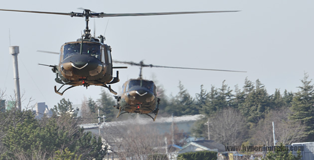 上空からもヘリコプターが隊列を組んで飛行する。