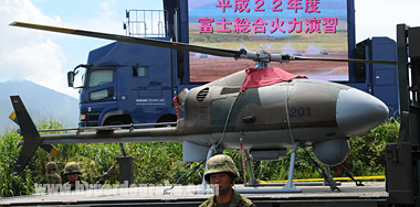 無人偵察機システムFFRSの飛行も行われたが、遠すぎて小さすぎて豆粒の様なので平成22年度の展示写真でなんとか。
