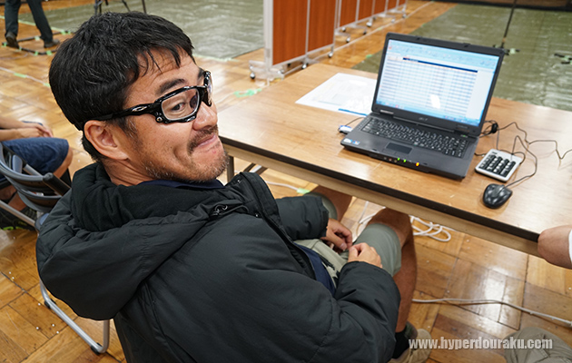 前年チャンプのマック堺さんももちろん参加。タイム入力を手伝っておられた。というか、マックさん2012年大会からずっと優勝しているよ、凄いなぁ!! もはやJSC職人と言ってもよいかも。エアコンで冷えないようにか黒のロングコートを羽織って王者の貫禄。