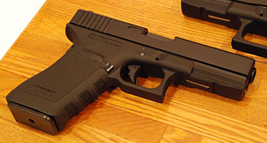 マテバの展示横にさりげなくグロック21の展示もあった。8mmBB弾を使用するガスブローバックガンだ。