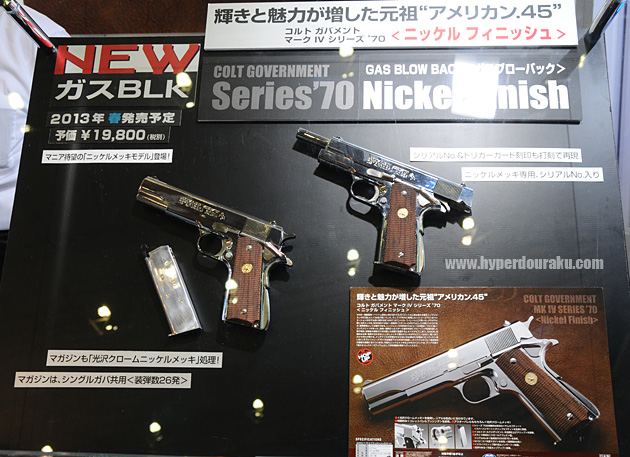コルトガバメント シリーズ70 ニッケルフィニッシュ。従来のガスブロのシリーズ70をニッケルメッキ仕様にしたもの。基本構造には変わりはない。