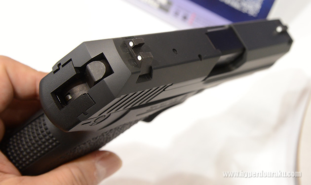 長いトップレールにはレールガイドナンバーが入り、フロント&リアサイトは取り外し可能なHKタイプ。