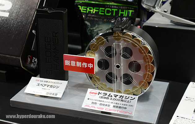 電動フルオートショットガンのAA-12。価格未定。発売はM4A1 MWSのあとすぐとのことなので、11月か少なくとも年末までには発売になるだろう。