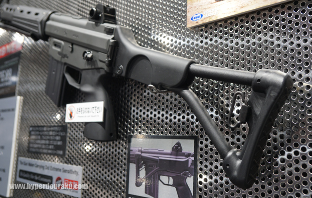 折り曲げできるフォールディングストックが特徴。