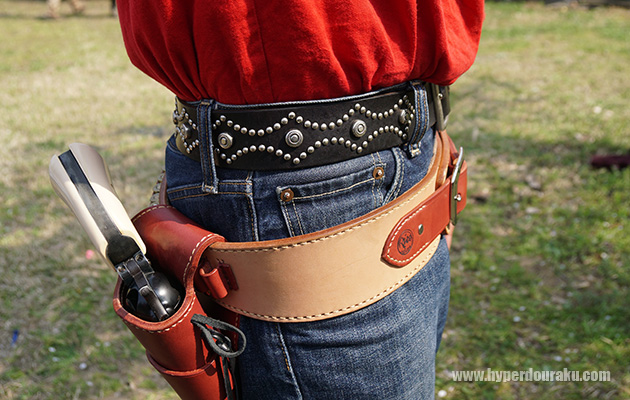 上の写真はバスカデロホルスターといって、20世紀初頭にスペインで作られたスタイルだそう。オールドスタイルよりローライズで、素早く抜きやすい。