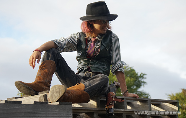 西部劇ごっこはここ数年11月下旬の開催で、少し肌寒いかなという季節でもある。ウエスタンシャツだけだとちょっと不安なのだが、どんな防寒対策かを聞いてみたところ、定番はベストを重ね着するそうだ。