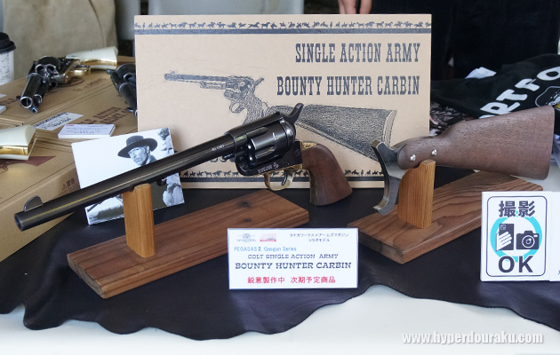 アームズマガジンとタナカワークスのコラボモデル、SAAバウンティハンターカービンが展示。
