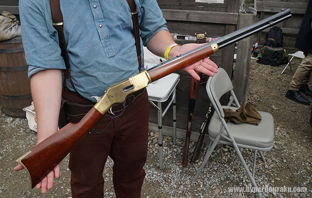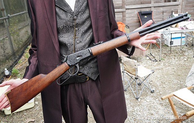 拳銃はSAAやパーカッションリボルバーが多いが、長物はどんなのが多いのか、筆者もあまり知らなかったので、参加者の皆さんに見せて頂いた。