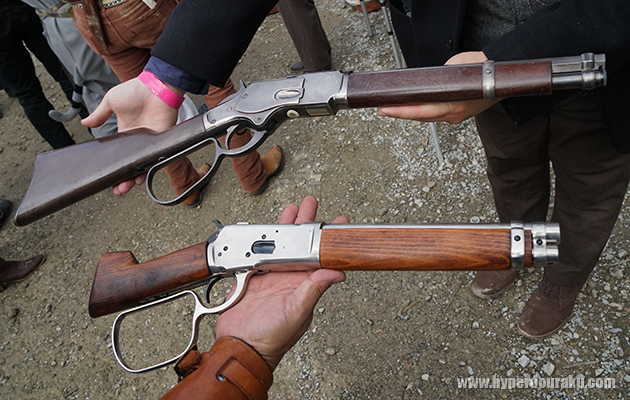 カービンやソードオフモデルも人気。ジョン・ウェインが映画で使用したトラッパーと呼ばれるカービンや、スティーブ・マックイーンがTVドラマ『拳銃無宿』で演じたジョッシュ・ランダル使用のランダルカスタムなどは取り回しもしやすく、愛用者が多い。そして小さいサイズを活かしたループレバーでくるくる回しながらレバー操作する仕草はガンマン心をくすぐるのである。