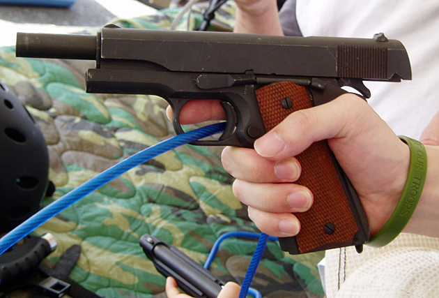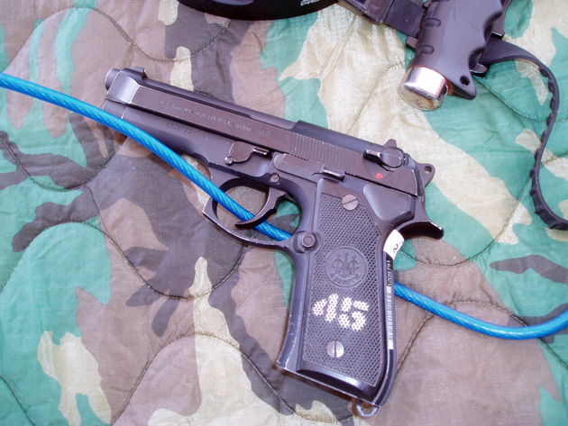 ベレッタ M9。イタリア、ベレッタ社の開発した9mm×19パラベラム弾を使用するオートマチックピストルで、1985年に米軍に制式採用された。