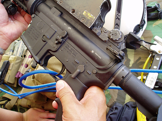 AN/PEQ-2 IRレーザーサイトがRASに装着されている。14.5インチバレル。