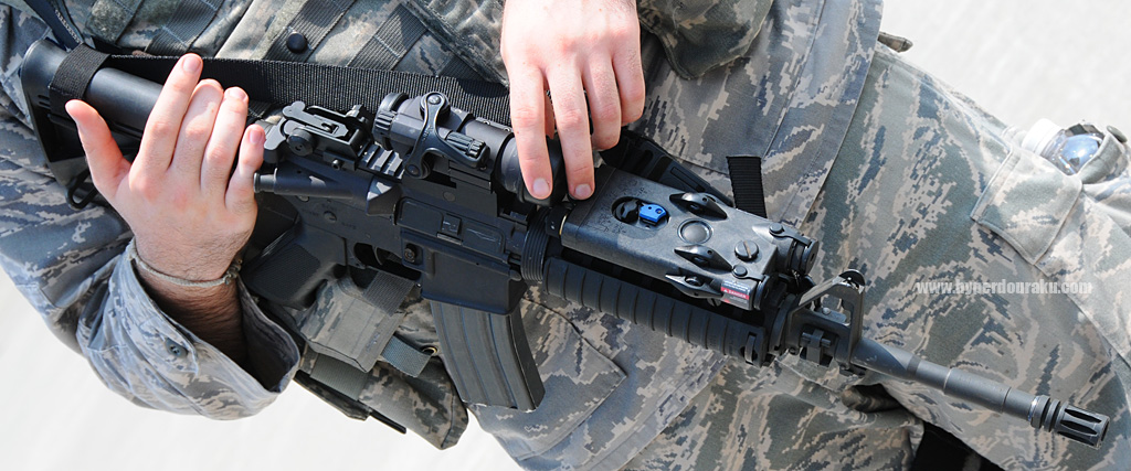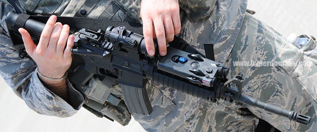警備兵はM4カービンにABUカモフラージュという空軍ならではの装備。