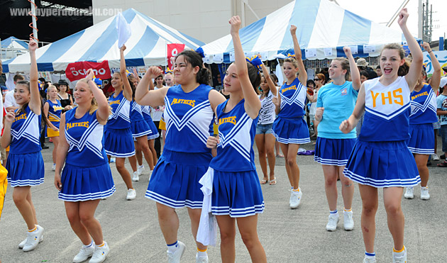 ハンガー前で突如始まった横田基地のアメフトチーム「パンサーズ」のチアリーダー達によるダンス。