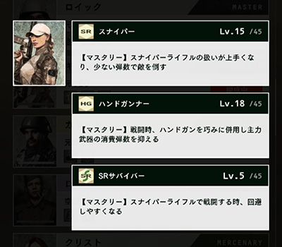 そしてブラックコマンドにおいて最も重要なスキル『スカベンジャー』。戦闘で敵から弾薬を拾うことができるので、スキルアップすれば高確率で弾薬を補充でき、弾切れを防ぎ、ミッション攻略が容易になる。