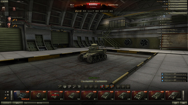 ゲームを始めるとまずはガレージが表示される。ここに自分の所有する戦車が格納されている。
