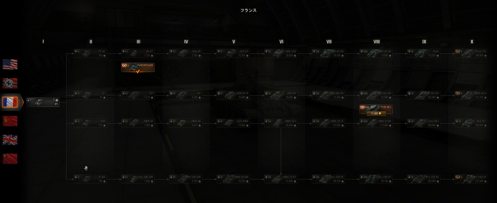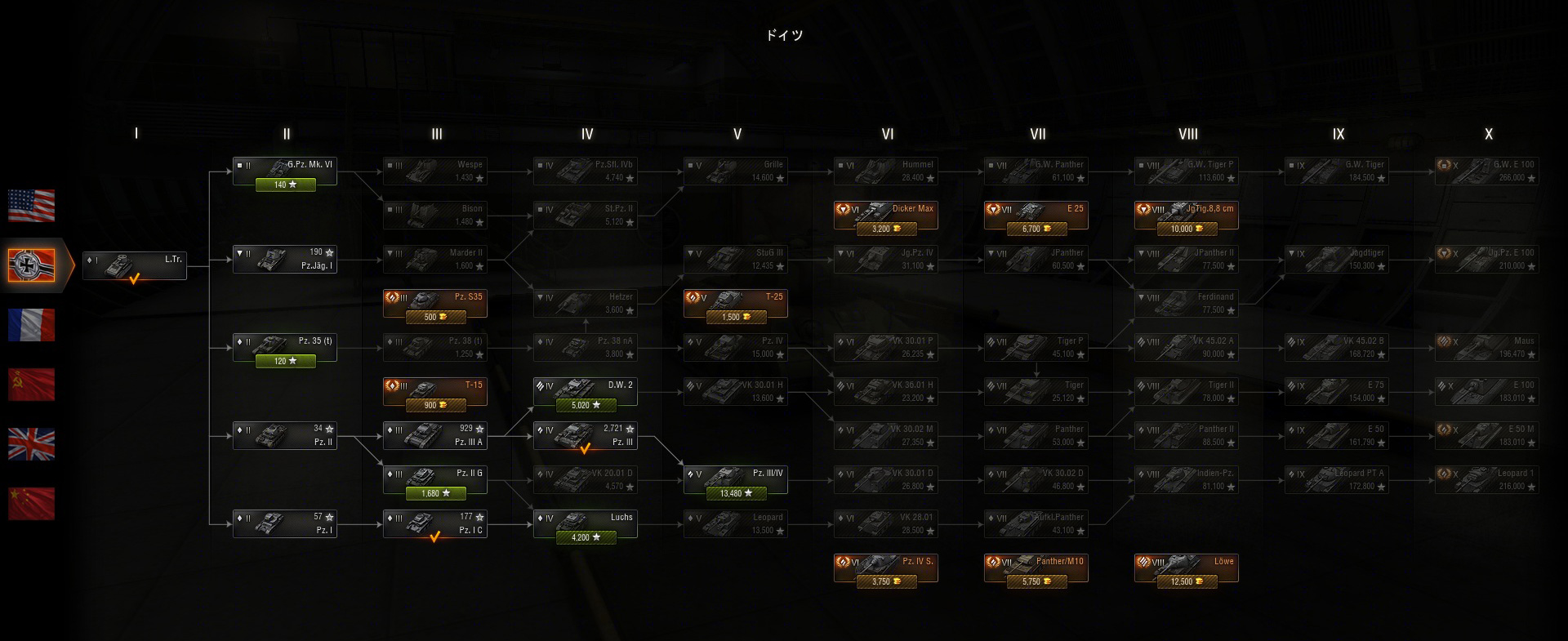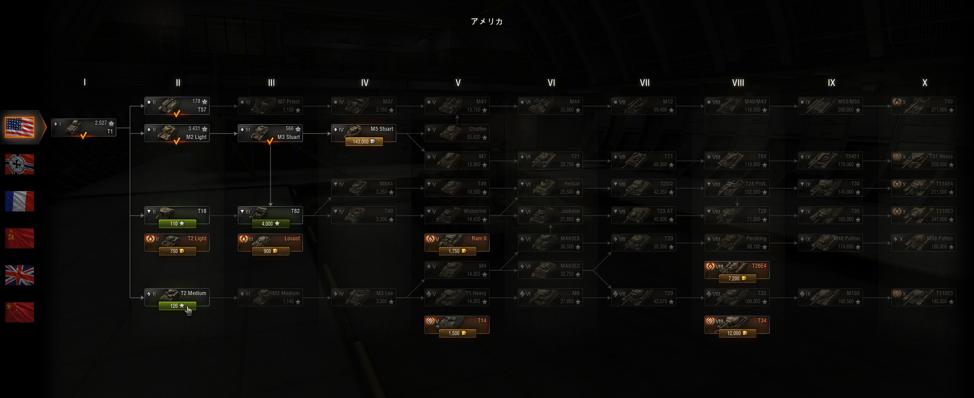 乗ってみたい戦車を目指して技術ツリーで進化系統を確認し、プレーしていくと良いだろう。