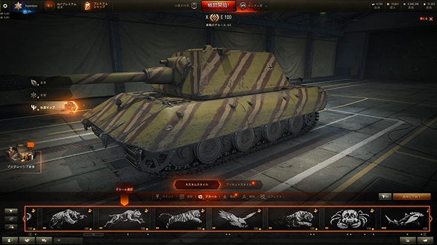 WoTでは戦車を塗装したり、デカール貼ったりできるので、自分だけの戦車って感じが盛り上がるよね。もちろん史実に登場した迷彩から、架空のペイント、カラーリングまでいろいろできる。