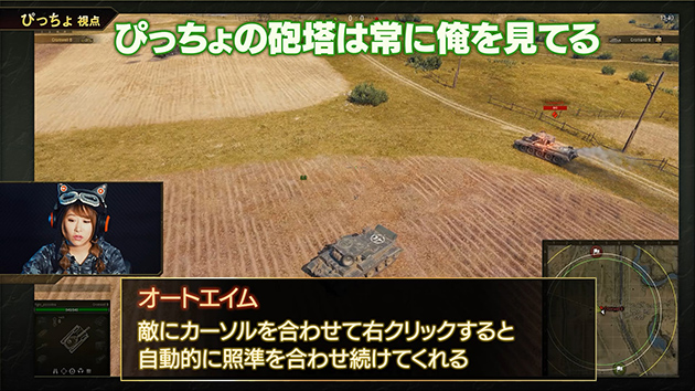 敵を右クリックしてオートエイム機能を使えば、照準を常に敵にロックできる。ただし、高速移動している敵や、遠距離の敵には偏差射撃が必要なので手動で照準しよう。