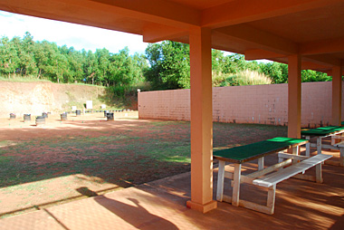 個別に区切られたレンジの奥にはベンチが置いてあり開放的なシューティングが楽しめる。