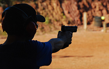 続いて中央のレンジに場所を移し、もう一丁の銃を撃つ。