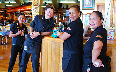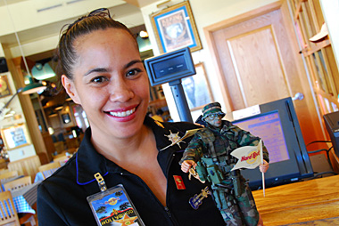 FJはどこへ行っても大人気。ハードロックカフェの旗を振って。