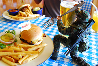最終日のランチはホテル近くのハードロックカフェ。定番過ぎるハンバーガーを食べた。