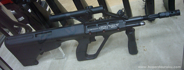 まずはMSAR STG-556という、ステアーAUGタイプのライフル。.223を使用する。
