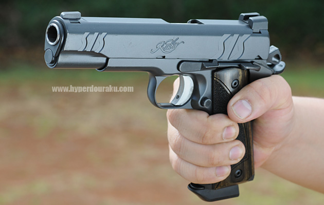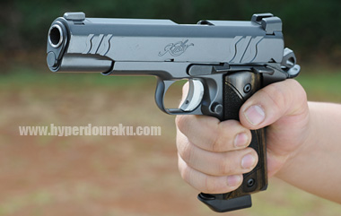 SISのスライドセレーションが特徴的。やっぱりガバ系は米国でも人気が高い。弾薬は.45ACP。