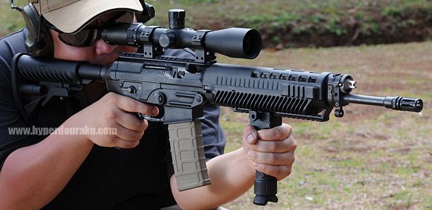 SIG556。これ一度撃ってみたかったんだよねぇ。見た目がゴツくてちょっと大柄だけど、撃ってみると案外マイルド。