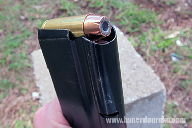 .50AE弾は先端が銅のジャケットで覆われておらず、凹みがあるホローポイント弾。