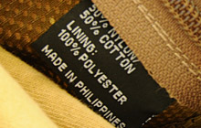 素材は50%ナイロン、50%コットンでリップストップ加工が施されている。(下のタブはジャケット・サンプルのものなのでライナー素材も表記されている)