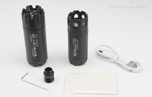 BIFROST BTのほうが少し大きい。どちらのモデルもUSB-C充電用ケーブル、M14逆ネジ、M11正ネジ変換アダプター、六角レンチ、保証書、ステッカー、日本語対応の取説が付属する。