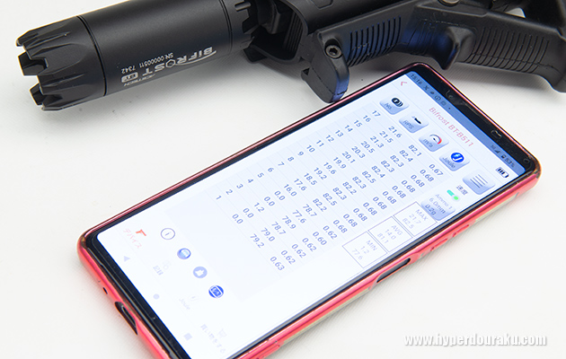 さらにBIFROST BTには弾速測定モードも付いている。初速、発射サイクル、ジュール、平均/最大/最低値表示に加え、CSV保存・シェア機能など、弾速計専用機と同じ機能が利用できる。