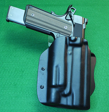 カイデックスホルスターは銃の種類、射手の利き手、付属アクセサリーによって形状が異なり、他の仕様には対応していない。例えば画像の1911は1911系通常フレームにシュアファイア社MR07アタッチメント、X300ライトを装着し射手は右利きとなる。ホルスターはこのセッティング専用となる為に銃の仕様が変更された場合、ホルスターの変更も余儀なくされる。