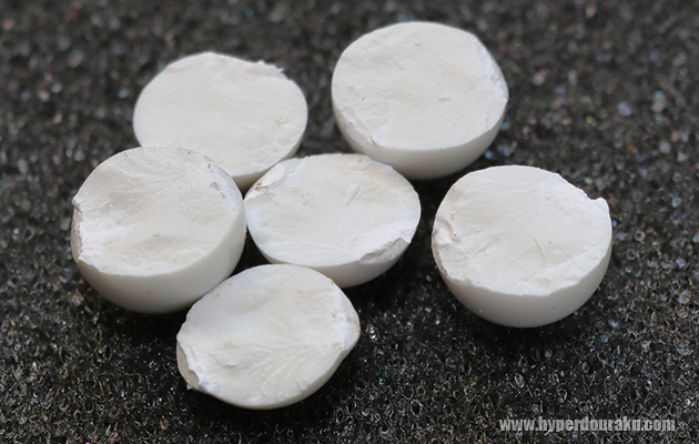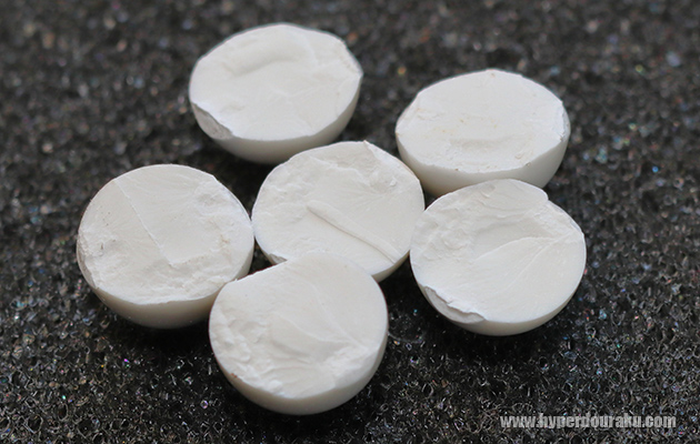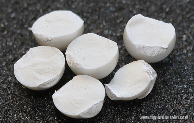ペンチで割る際の粘りは0.20gや0.25gより明らかに少なめ。念の為メッシュゴーグルに対して近距離からは撃たない方が良いかも。やはり内部に気泡ナシ。内部成分の粒子も均一に見える。