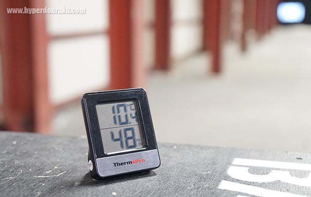 実射テスト時のBATONレンジは室温10.4℃、湿度48%だった。バイオBB弾は、地球環境に対する負荷が少ない生分解性の「PLA樹脂」を使用しており夏場の高温が脅威なのは皆様もご存知の通りだが、冬場の低温もHOPチェンバーのゴム等を硬くしてしまうので弾道の安定を図るのにはやや苦労する。そんな中でも25m射撃で「十分合格点」と言える結果を残したHitCallには今後も大いに期待したい。