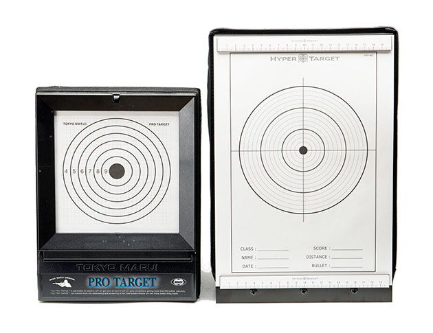 プロターゲットが専用の正方形ペーパーに対して、ハイパーターゲットはA4サイズのペーパー。近距離射撃では上下に着弾がブレることが多いので、これくらい的が大きいほうが安心感があります。
