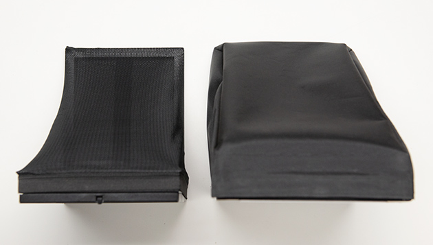 SECC鋼板 カチオン電着塗装(半光沢ブラック)、PVC加工ナイロン生地、ポリエステル生地製