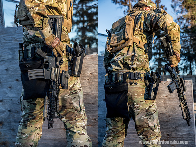 煩わしいスリングが無くてもM4がしっかり吊り下げられて両手が自由になる。新感覚の実用性がマジッククリップの大きな魅力だ。