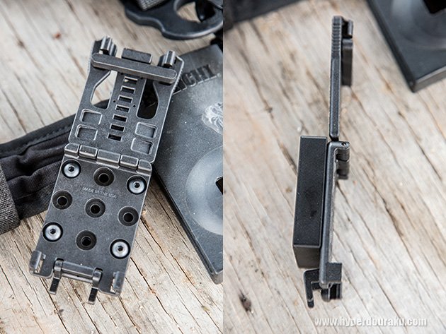 ベースアダプターはブラックホーク社のCQCプラットフォームにネジ穴位置が合わせられていて、ガッチリ取り付けられる。
