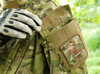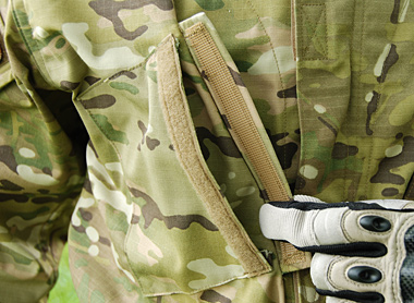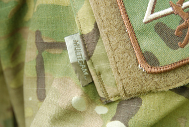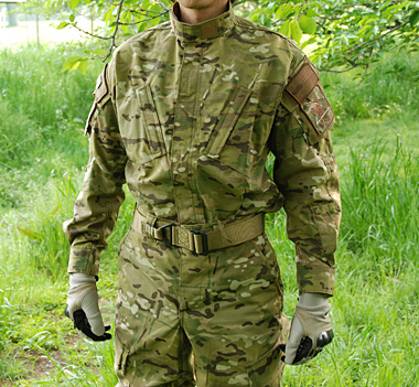 二の腕部にMULTICAMの制式ライセンスの証拠であるタブがある。