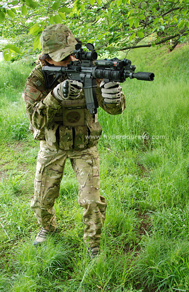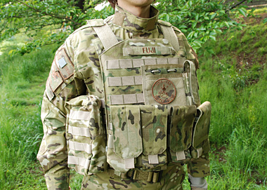 写真はIR識別パッチ付の血液型、ネイビーシールズパッチ、チーム3パッチ、アメリカ国旗などを装着している。
