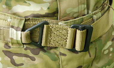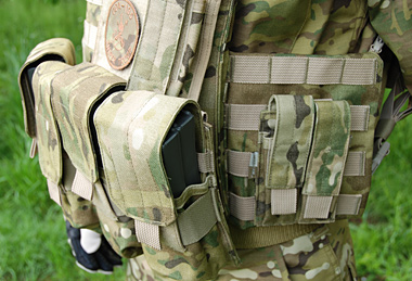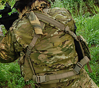 さて、マルチカムで悩むのがポーチ類をどのようにするか。従来のALICE装備であるピストルベルトとY形サスペンダーではせっかくのマルチカムがもったいない。