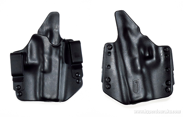 ベルトへの装着はクリップ式で、コンパクトなサイズなため、ロングバレルやサイレンサー装着にもフィットします。