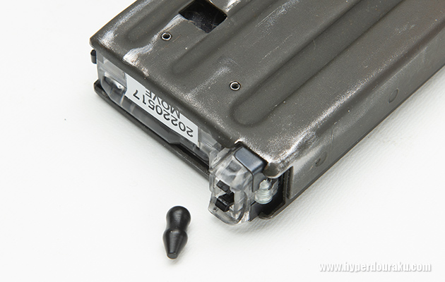 このひょうたん型の純正マガジンフォロアーは逆さに入れると抜けにくいとか、スペアを持ち歩くのがPTWオーナーのたしなみ、みたいに言われていたw。なお、2023年4月以降に出荷された純正マガジンはフォロアーがジョイントした新バージョンになっているそう。