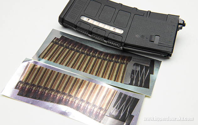 付属の弾薬シールを貼れば、ウインドウからカートが見える。シールを貼ると切り替えスイッチを覆ってしまうので、その部分だけカットすれば問題なし。