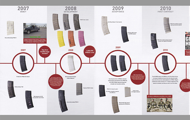 ちなみに、MAGPULはもともとこのマガジンを引っ張り出すアイテムを1999年に発売して始まった会社。そして2007年に最初のPMAGが発売されている。PMAGの歴史 PDF(96MB)