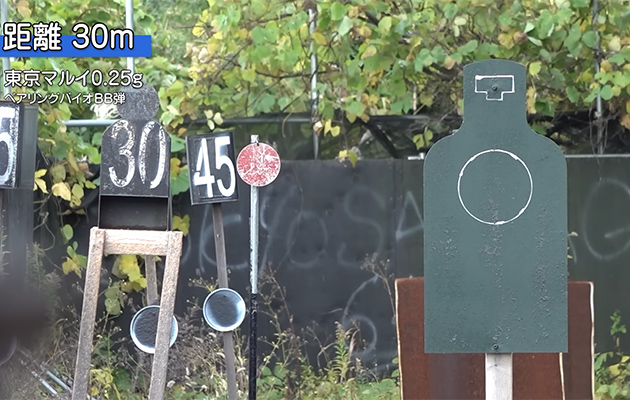 30m先でセンターサークルに、40m先でTシャツに集弾すれば、サバゲーでも十分使える性能です!