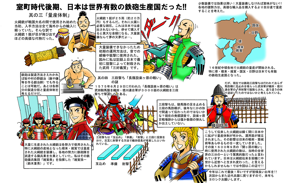 特に堺・根来・雑賀・国友・日野は日本でも有数の鉄砲生産国となった。