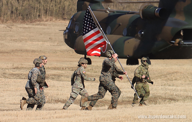 今年も米国をはじめ、14か国(オーストラリア、ベルギー、カナダ、フランス、ドイツ、イタリア、オランダ、フィリピン、ポーランド、シンガポール、タイ、トルコ、イギリス、アメリカ)の同盟国・同志国の部隊が集結。各国旗を掲げて走る!